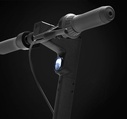 2.5W LED front headlight. Rear/brake light. On-off switch button.