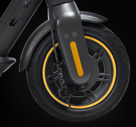 10-inch front and rear tubeless tires. Shock absorbing for comfortable riding. Improved control and handling of the bike. Get you through bumpy terrains.